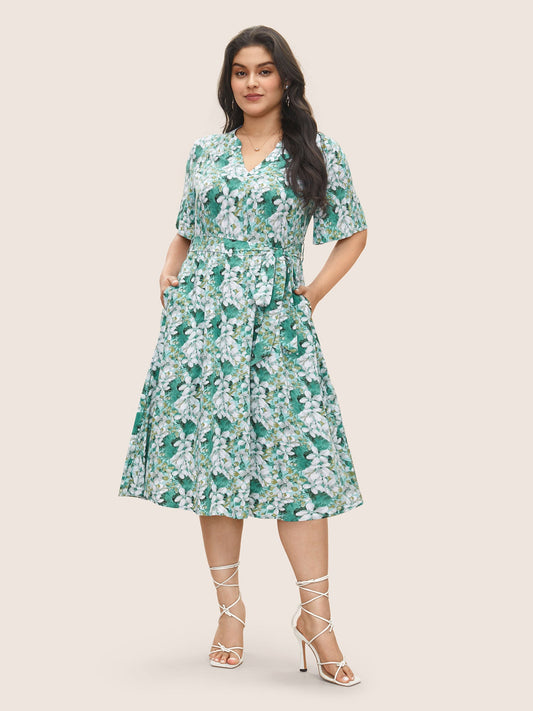 Ditsy Floral Elastic Waist Belted Adjustable Straps Dress