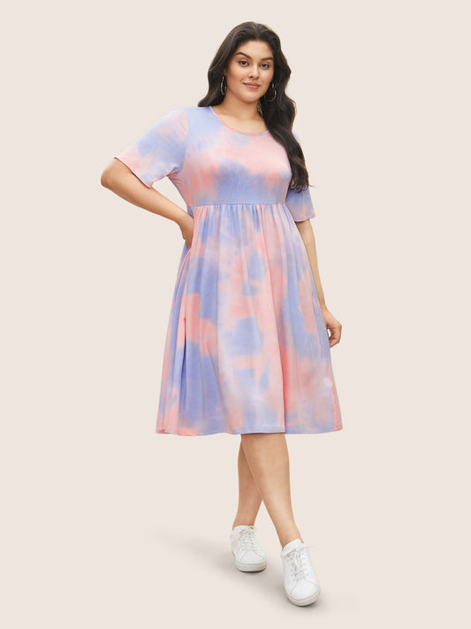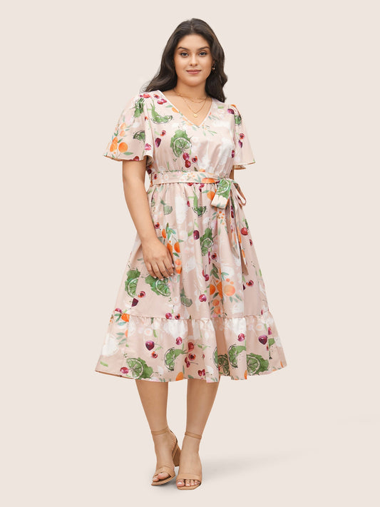 Citrus Fruits Print Elastic Waist Belted Pocket Dress