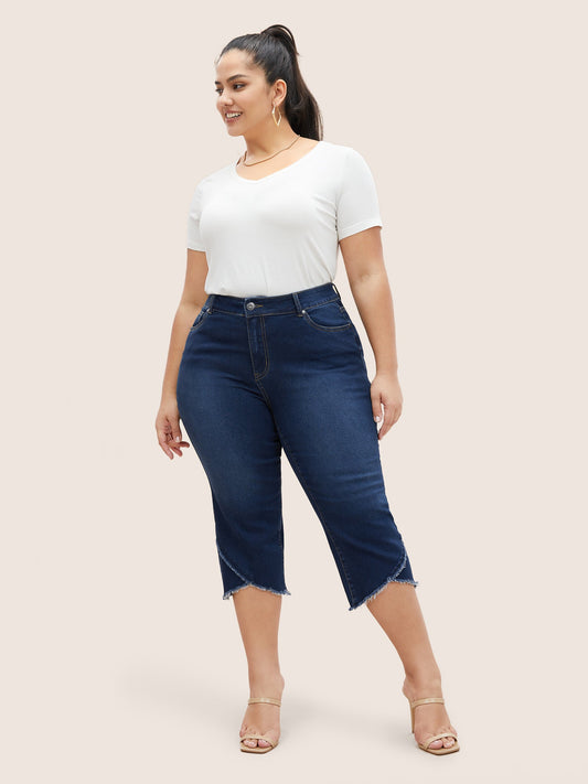 Raw Trim Wrap Hem Straight Leg Jeans