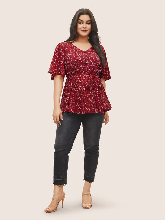 Polka Dot Ties Button Detail Blouse