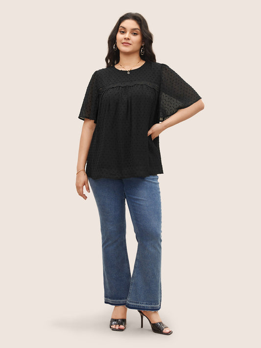 Plain Tucked Seam Button Up Flutter Sleeve Blouse