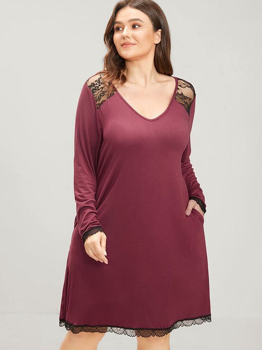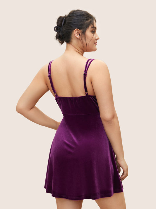 Solid Mesh Patchwork Velvet Keyhole Sleep Dress
