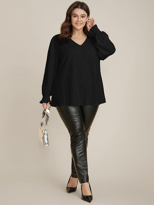 Solid Pocket Lantern Sleeve Velvet Flutter Dress