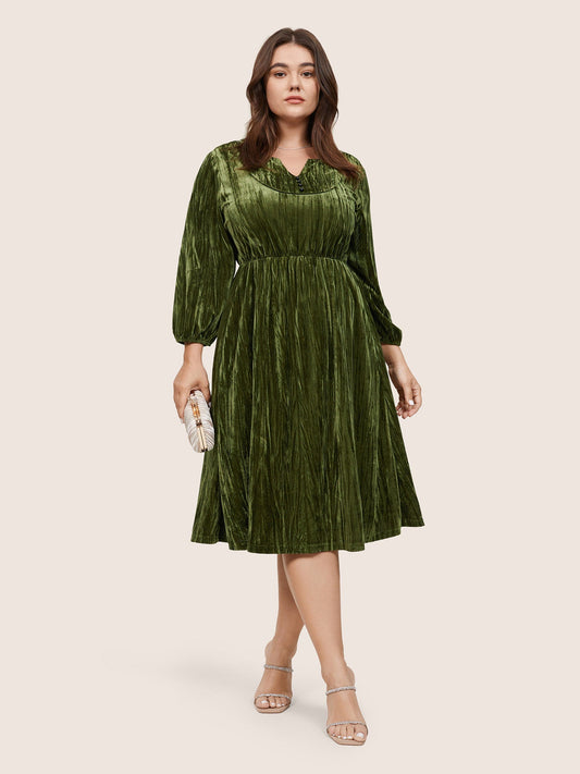 Solid Textured Notched Elastic Waist Chiffon Dress