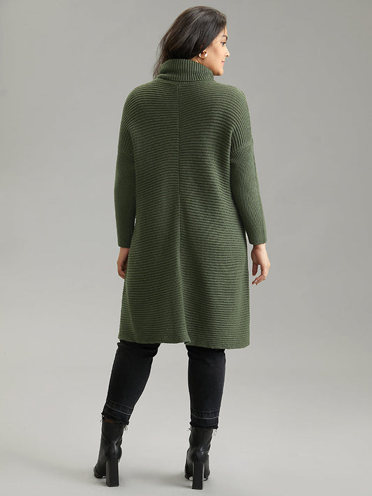 Turtle Neck Plain Asymmetrical Hem Drop Shoulder Pullover