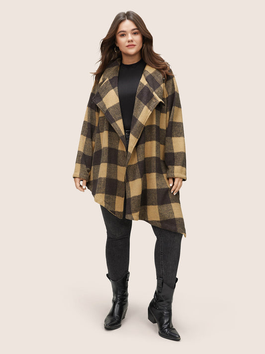 Plaid Buckle Detail Asymmetrical Hem Coat