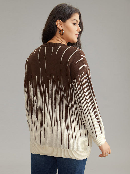 Jacquard Asymmetrical Colorblock Contrast Cardigan