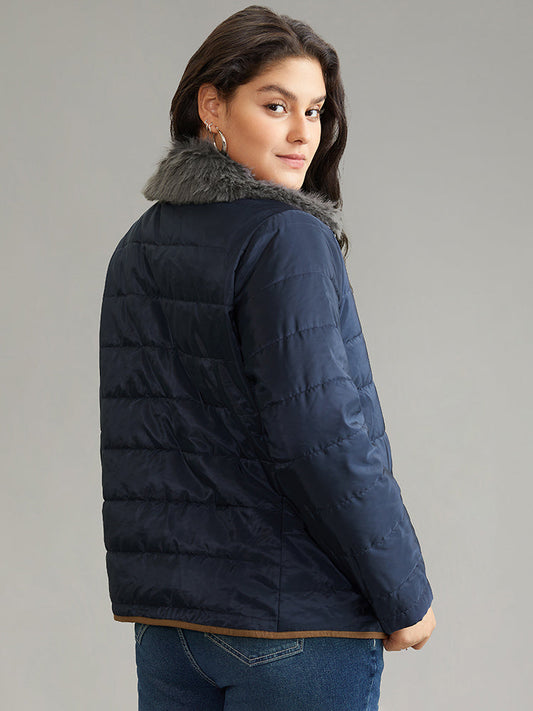Fuzzy Trim Patchwork Zipper Padded Jacket