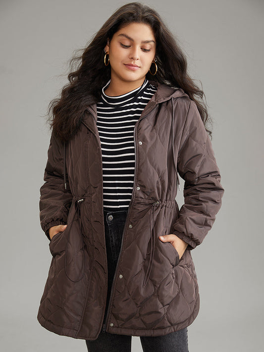 Quilted Drawstring Hooded Pocket Zipper Cotton Jacket