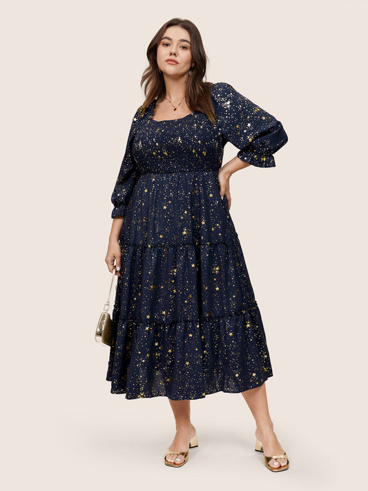 Shirred Star Glitter Frill Trim Raglan Sleeve Dress
