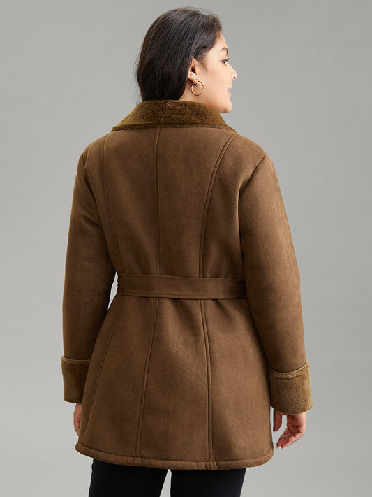 Fuzzy Patchwork Double Breasted Belted Jacket