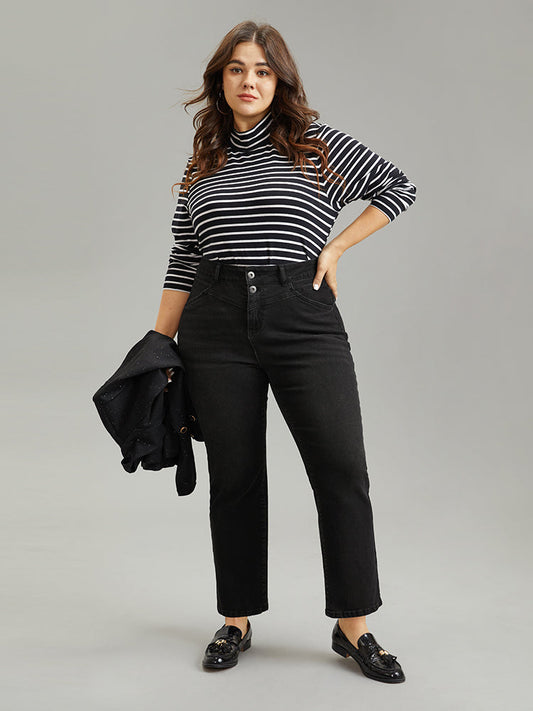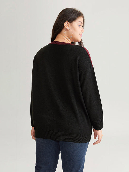 Corduroy Patchwork Plaid Notched Button Detail Blouse