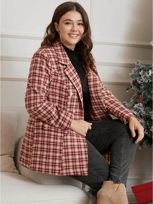 Plaid Suit Collar Button Detail Flap Pocket Coat