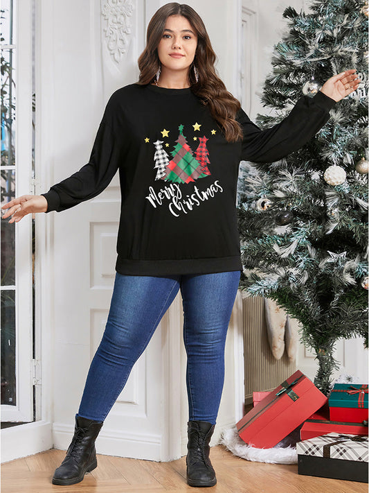 Tree & Letter Print Drop Shoulder Sweatshirt