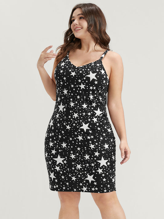 Star Print Backless Bodycon Cami Dress