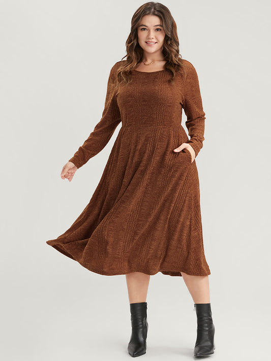 Solid Round Neck Pocket Rib Knit Dress Without Belt