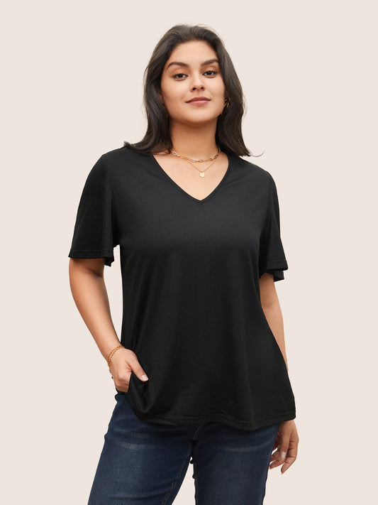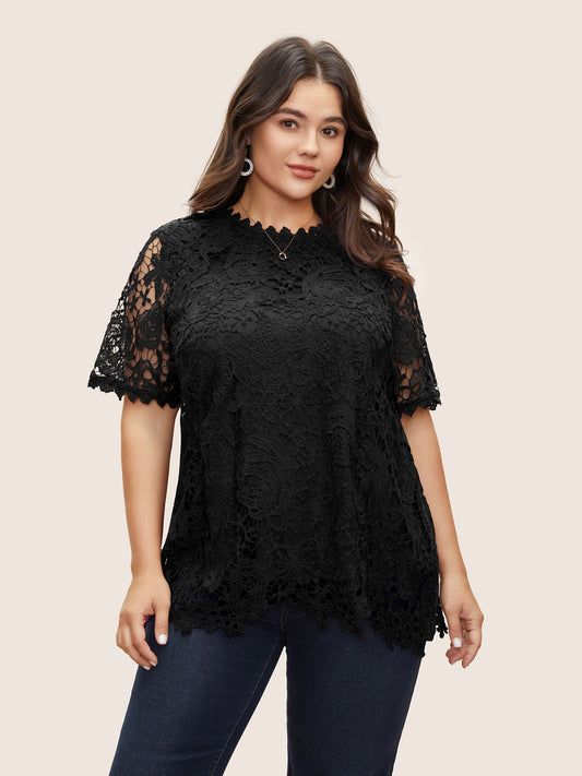 Butterfly Crochet Lace Mesh V Neck T-shirt