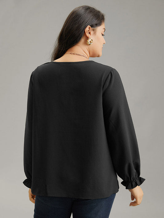 Pleated Detail Contrast Lace Ruffle Blouse