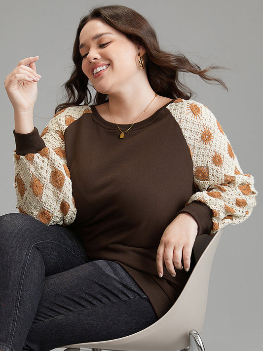 Contrast Rib Knit Texture Raglan Sleeve Sweatshirt