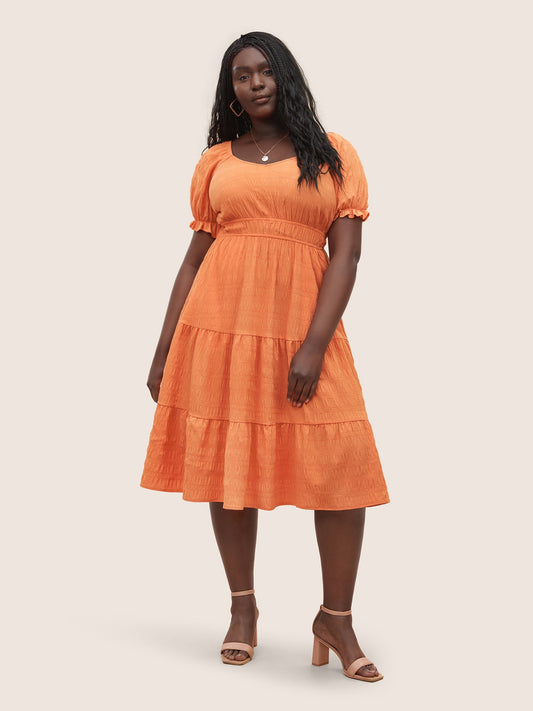 Plisse Flutter Patchwork Hem Lantern Sleeve Dress