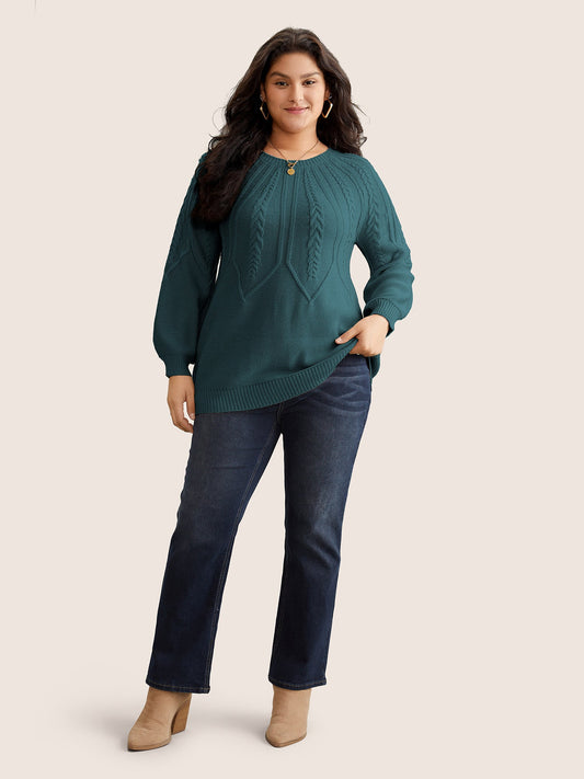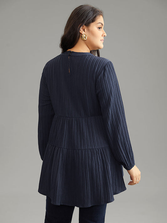 Keyhole Textured Lantern Sleeve Layered Hem Blouse