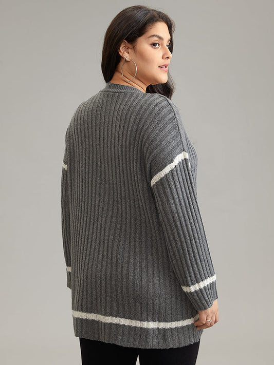Contrast Plisse Drop Shoulder Pocket Cardigan