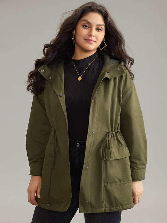 Lapel Collar Plaid Pocket Fuzzy Trim Coat