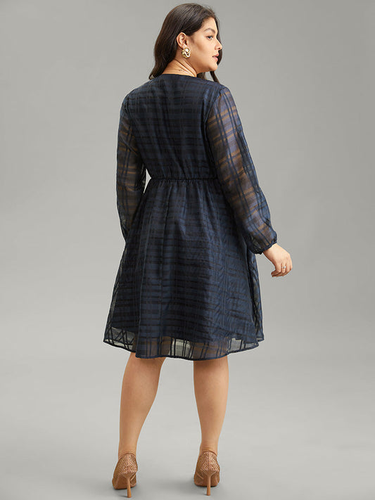 Geometric Graphic Mesh Lantern Sleeve Dress