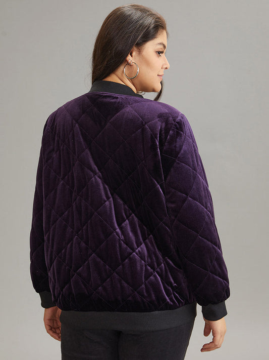 Velvet Zipper Fly Pocket Quilted Padded Jacket