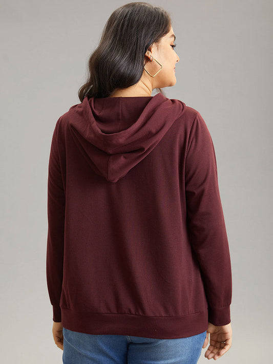 Contrast Half Zip Patched Pocket Hooded Sweatshirt