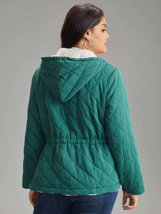 Drawstring Quilted Zipper Fluffy Patchwork Jacket
