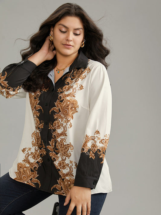 Moroccan Print Raglan Sleeve Elastic Cuffs Pullover