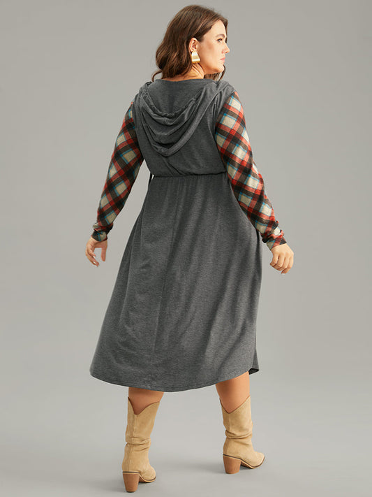 Supersoft Essentials Hooded Plaid Patchwork Drawstring Dress
