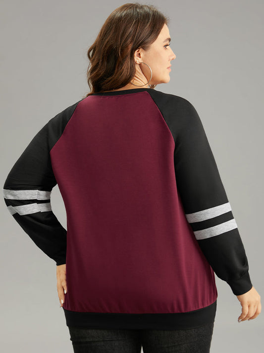 Striped Contrast Raglan Sleeve Stitch Sweatshirt