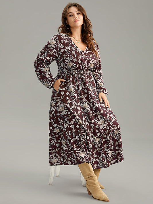 Striped Contrast Drawstring Button Detail Shirt Collar Dress