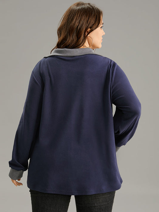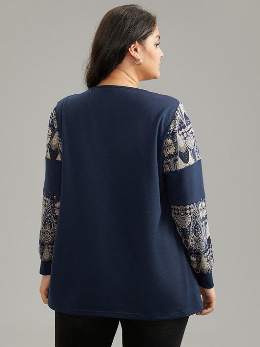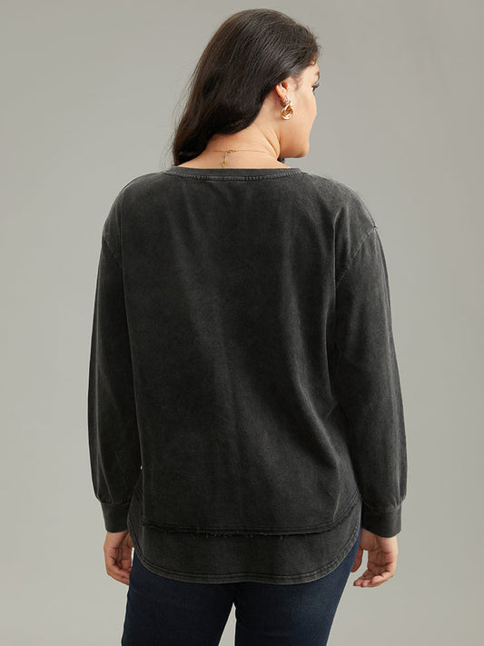 Vintage Split Arc Hem Patched Pocket Sweatshirt