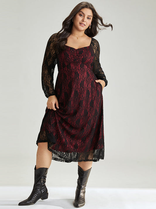 Christmas Crochet Lace Mesh Contrast Square Neck Dress