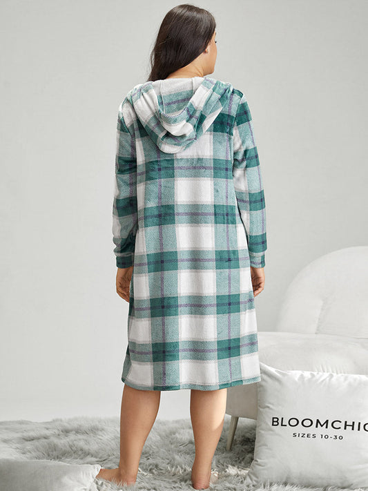 Plaid Contrast Half Zip Hooded Sleep Dress