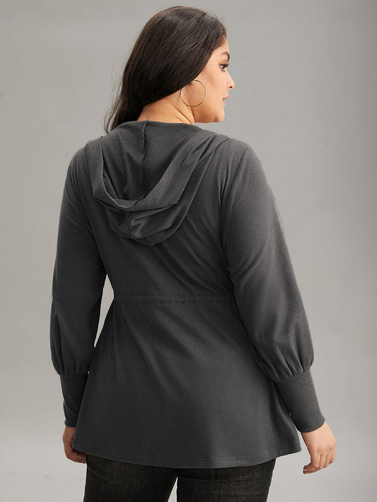 Solid Drawstring Hooded Pocket Zipper Sweatshirt