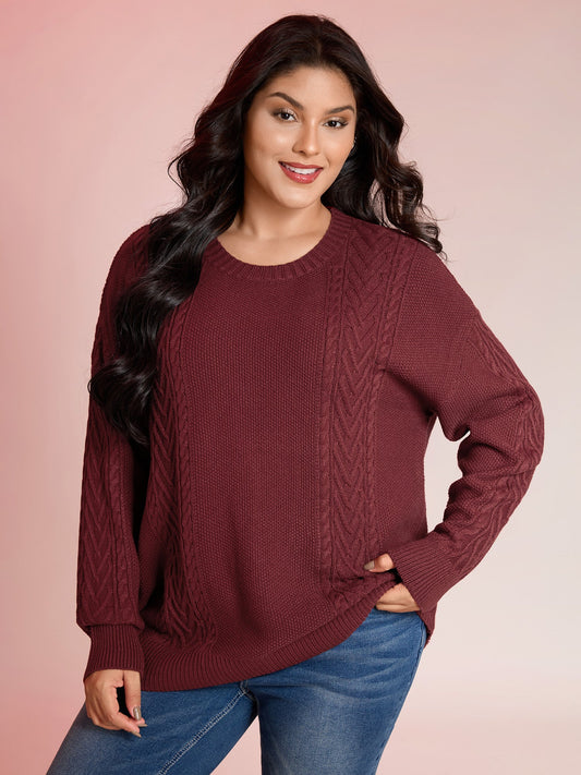 Cable Knit Textured Split Pullover
