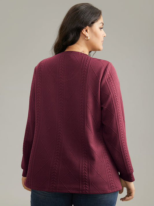 Plain Texture V Neck Roll Dolman Sleeve T-shirt