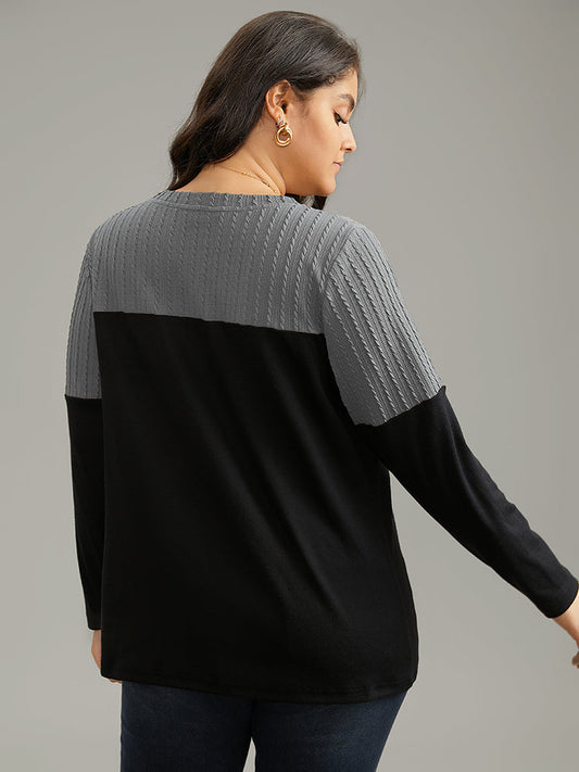 Textured Patchwork Contrast Crew Neck Knit T-shirt