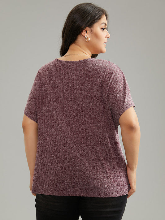 Plisse Surplice Neck Batwing Sleeve T-shirt