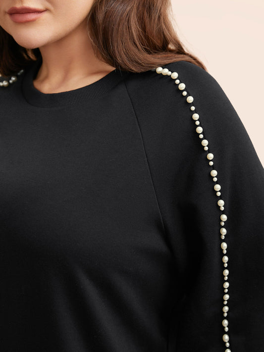 Crew Neck Pearl Beaded Raglan Sleeve Sweatshirt
