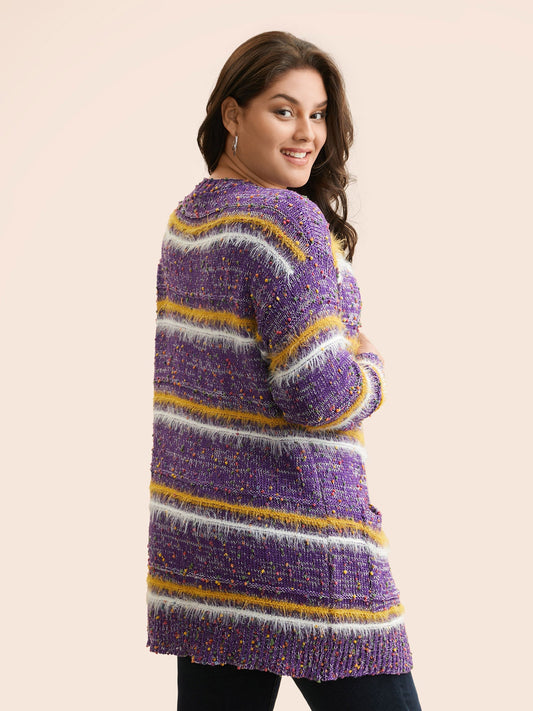 Striped Contrast Texture Fluffy Cardigan