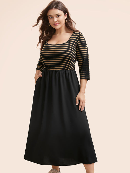 Square Neck Striped Patchwork Midi Dress