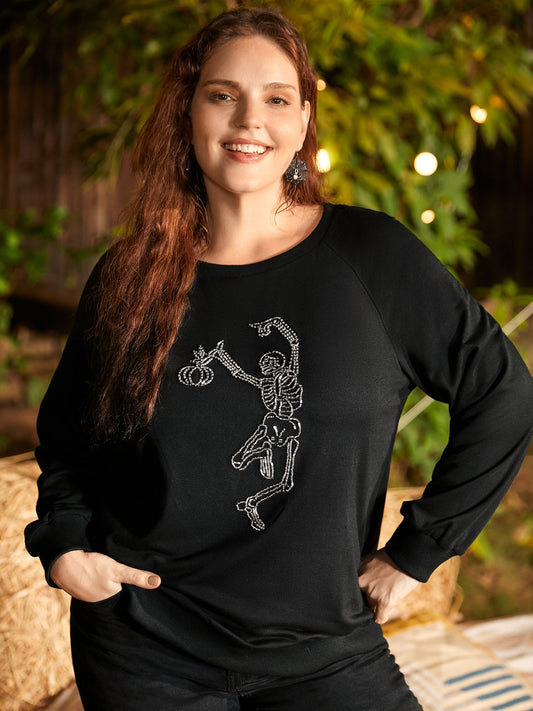 Skull Embellished Raglan Sweatshirt