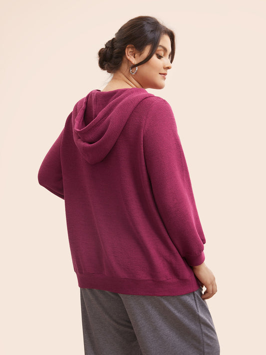 Solid Button Up Hooded Drawstring Sweatshirt