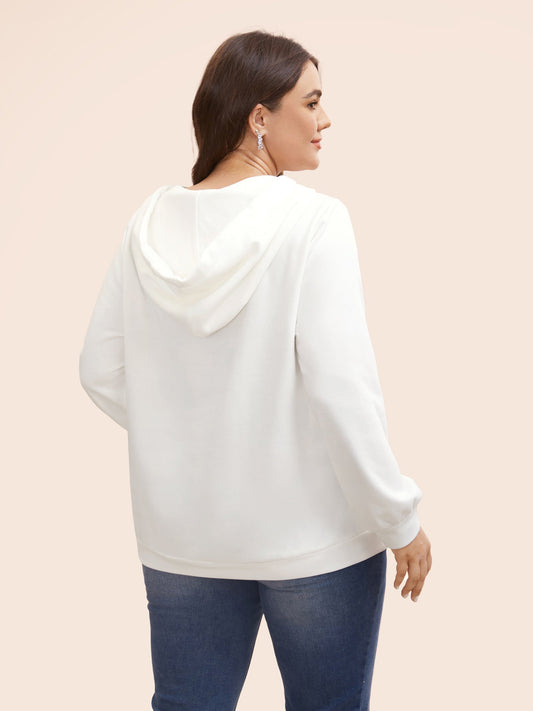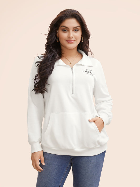Letter Print Half Zip Kangaroo Pocket Sweatshirt