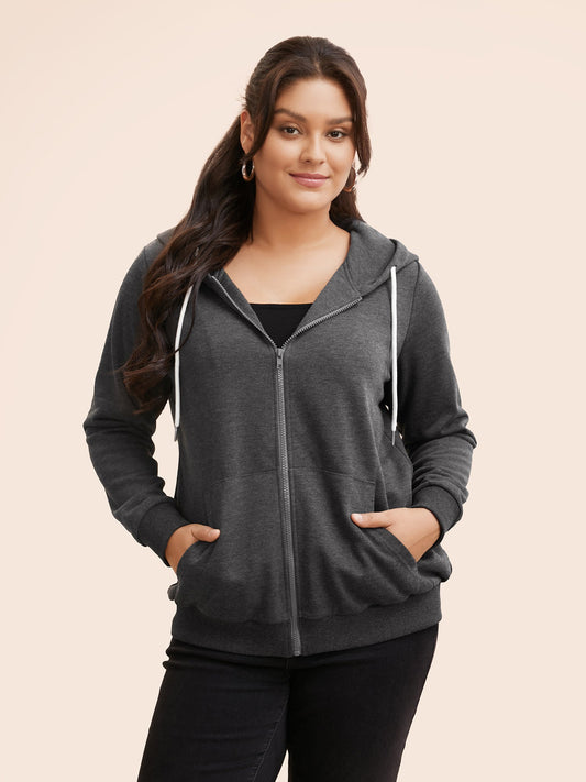 Solid Patch Pocket Hooded Drawstring Sweatshirt